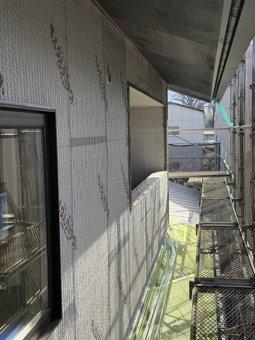 外壁の下地には、モルタルラミテクトを施工しています。