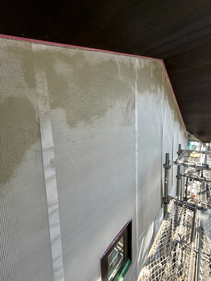 今回の現場では、ジョリパット仕上げの前段階として、外壁モルタル下地を施工しました。完成すると隠れてしまう部分ですが、外壁の品質はこうした工程に大きく左右されます。