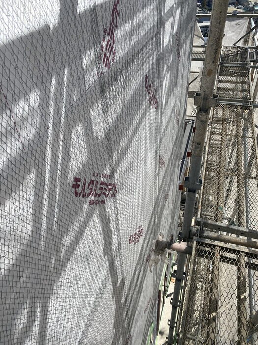 今回の現場では、最終仕上げにジョリパットを予定しており、その前段階として、外壁モルタル下地をしっかりつくる工程を行いました。